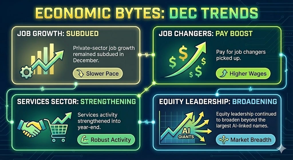 Economic data this week (ADP Employment Report for December) delivered a clean snapshot of a cooling but still expanding U.S. economy.